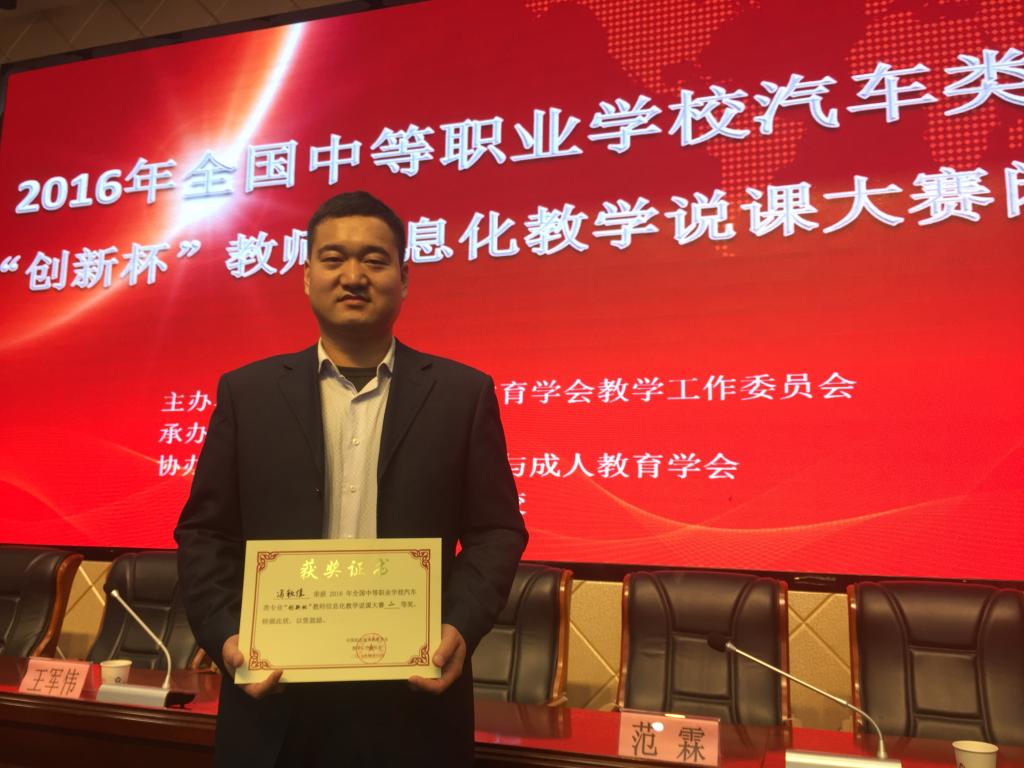 由中國職業(yè)技術(shù)教育學(xué)會教學(xué)工作委員會主辦、高等教育出版社承辦的2016年全國中等職業(yè)學(xué)校汽車類專業(yè)“創(chuàng)新杯”教師信息化教學(xué)說課大賽于11月14日在湖南長沙汽車工業(yè)學(xué)校落下帷幕。來自全國各地109位中職汽車類專業(yè)教師參加了此次大賽,我院汽車工程系馮秋佳老師榮獲汽車類專業(yè)課程競賽二等獎。