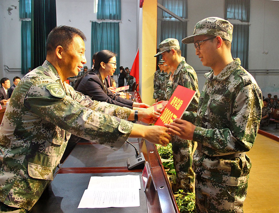 軍訓(xùn)教官代表陳航發(fā)言