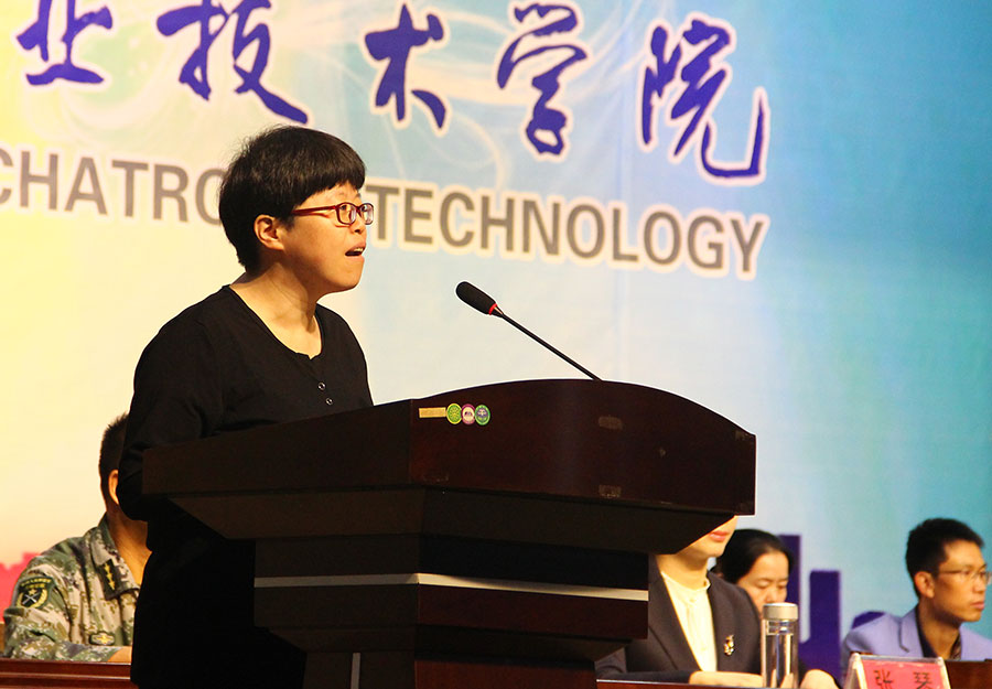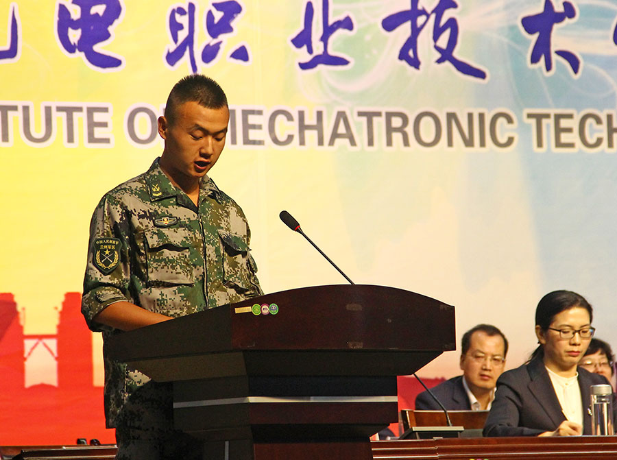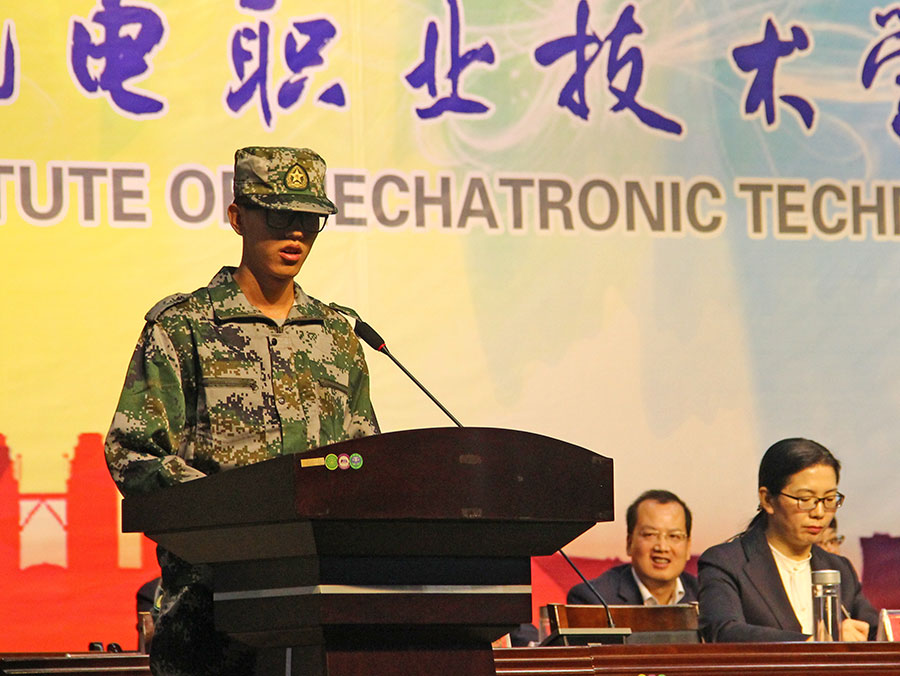 國(guó)家級(jí)名師,信息工程系專業(yè)帶頭人郭靖老師代表全體教職工,16通信技術(shù)專業(yè)何晶同學(xué)代表在校生,17級(jí)機(jī)電技術(shù)馬潤(rùn)華代表新生,秦嶺學(xué)生軍訓(xùn)基地副主任盧春國(guó)、軍訓(xùn)教官陳航等先后發(fā)言,表達(dá)了對(duì)新生的歡迎和關(guān)懷,也對(duì)軍訓(xùn)和今后的學(xué)習(xí)生活提出了殷切的期望。