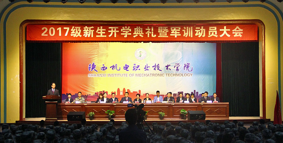 9月5日,陜西機(jī)電職業(yè)技術(shù)學(xué)院2017級(jí)新生開(kāi)學(xué)典禮暨軍訓(xùn)動(dòng)員大會(huì)在大禮堂隆重舉行。院領(lǐng)導(dǎo)伊遜智、鄧新治、張新堂、徐圣月、張琴出席,各部門(mén)主要負(fù)責(zé)人、秦嶺學(xué)生軍訓(xùn)基地副主任盧春國(guó)等軍訓(xùn)教官、全體新生及新生輔導(dǎo)員參加。典禮由副院長(zhǎng)鄧新治主持。