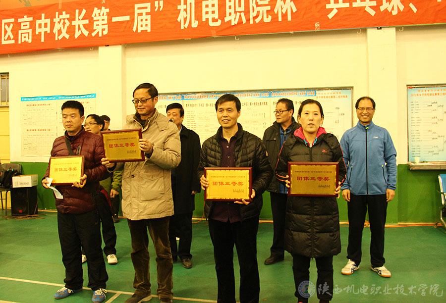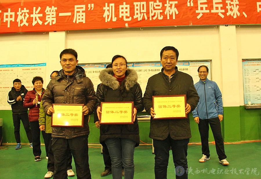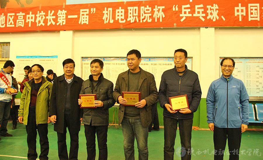 經(jīng)過角逐,乒乓球單打前八名為:趙玎(太白縣運(yùn)動中心主任)、王亞梅(市考管中心主任)、陶平利(眉縣城關(guān)中學(xué)校長)、張道儉(眉縣槐芽中學(xué)原校長)、華為輝(渭濱區(qū)長嶺中學(xué)校長)、伊遜智(陜西機(jī)電職院黨委書記、院長)、陳延強(qiáng)(市考管中心副主任)、何衛(wèi)兵(隴縣教體局副局長)。乒乓球團(tuán)體前三名為:市教育局、市考管中心聯(lián)隊,眉縣代表隊,陜西機(jī)電職院。中國象棋前三名為:郭紅星(扶風(fēng)縣教體局)、寇濤(鳳縣考管中心)、張新堂(陜西機(jī)電職院)。