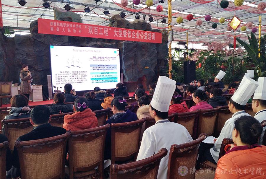 2018年1月16日,由我院承辦的第三期眉縣“雙百工程”大型餐飲企業(yè)公益培訓(xùn)班,在眉縣濱河新區(qū)寶深逸樂園按計(jì)劃如期舉行,共有來自5個(gè)單位,82名學(xué)員參加培訓(xùn)。我院信息工程系主任杜海軍代表學(xué)院參加了培訓(xùn)班的開班儀式,并發(fā)表講話,眉縣餐飲飯店行業(yè)協(xié)會(huì)黨支部書記楊小勇、執(zhí)行會(huì)長(zhǎng)李巍,在開班儀式上向參加培訓(xùn)人員提出要求,并對(duì)支持本次活動(dòng)的單位及領(lǐng)導(dǎo)表達(dá)了感謝。