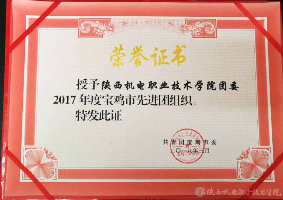 會議對共青團工作優(yōu)秀縣區(qū)、市直先進團組織、共青團員先鋒崗(隊)進行了表彰。我院團委被評為2017年度寶雞市先進團組織。