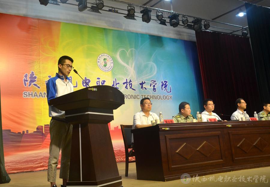 我院參軍積極分子17電子通信班余小瑞代表應(yīng)征入伍大學(xué)生做了發(fā)言。