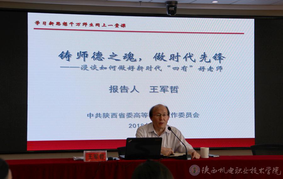為深入學(xué)習(xí)宣傳貫徹習(xí)近平新時代中國特色社會主義思想,特別是習(xí)近平總書記在北京大學(xué)師生座談會上和紀(jì)念馬克思主義誕辰200周年大會上重要講話精神,根據(jù)教育部和中共陜西省委高教工委關(guān)于在陜西高校開展“學(xué)習(xí)新思想千萬師生同上一堂課活動”要求,6月13日上午,學(xué)院在機(jī)電汽車大樓四樓多功能廳主會場和大禮堂分會場,同步舉辦了現(xiàn)場授課報告會。講師團(tuán)成員,西安外國語大學(xué)校長王軍哲、延安大學(xué)學(xué)工部副部長喬劍蒞臨我院為師生作報告。學(xué)院黨委書記、院長伊遜智等領(lǐng)導(dǎo)班子成員出席大會,全院在編在崗教職工及17級高職全體學(xué)生聆聽了報告。黨委副書記、紀(jì)委書記鄧新治主持會議。
