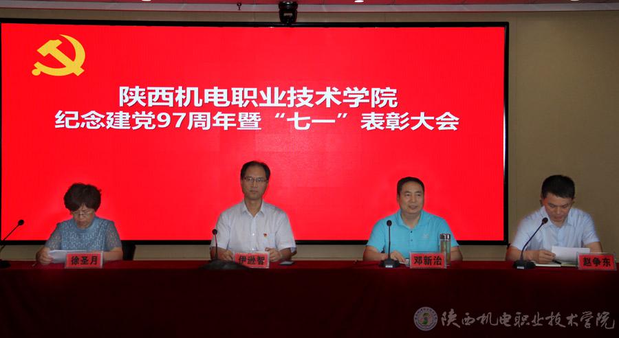 在黨的光輝誕辰即將來臨之際,6月28日下午,陜西機(jī)電職業(yè)技術(shù)學(xué)院全體共產(chǎn)黨員在汽車機(jī)電大樓四樓視頻會議室歡聚一堂,參加院黨委舉辦的紀(jì)念建黨97周年暨“七一”表彰大會。黨委書記、院長伊遜智,黨委副書記、紀(jì)委書記鄧新治,黨委委員、副院長徐圣月,黨委委員、院長助理趙爭東及教師黨員、優(yōu)秀學(xué)生代表共90余人參加了會議。