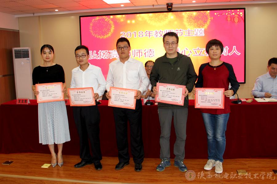 副院長(zhǎng)張琴、院長(zhǎng)助理趙爭(zhēng)東分別宣讀了2018年我院教師在全省及校內(nèi)的各類比賽、評(píng)選活動(dòng)獲獎(jiǎng)文件,并對(duì)獲獎(jiǎng)教師進(jìn)行了表彰獎(jiǎng)勵(lì)。