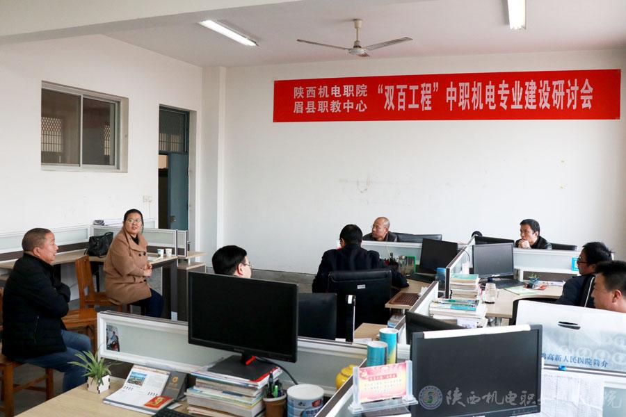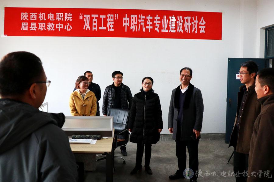 為全面落實“雙百工程”教育幫扶工作,助推眉縣脫貧攻堅,11月27日,陜西機電職業(yè)技術學院黨委書記伊遜智,黨委宣傳部長、工會副主席李明,信息工程系主任杜海軍等一行8人赴眉縣職教中心開展“雙百工程”教育幫扶,專業(yè)建設研討活動。
