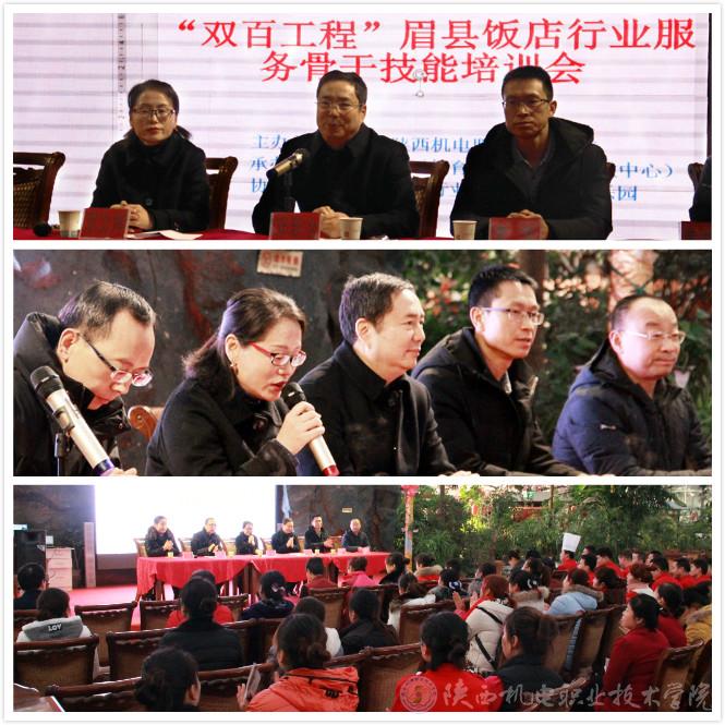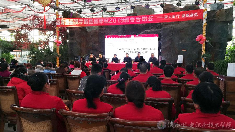 2018年12月13日,由我院主辦的2018年“雙百工程”眉縣飯店行業(yè)服務骨干技能公益培訓會,在眉縣濱河新區(qū)寶深逸樂園按計劃如期舉行。我院黨委副書記、紀委書記鄧新治,黨委宣傳部部長、工會副主席李明代表學院參加了培訓會活動。培訓會由眉縣職教中心副校長周文婷主持。