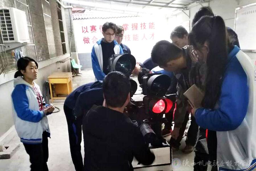 實訓(xùn)學(xué)生在老師指導(dǎo)下調(diào)整信號機顯示距離