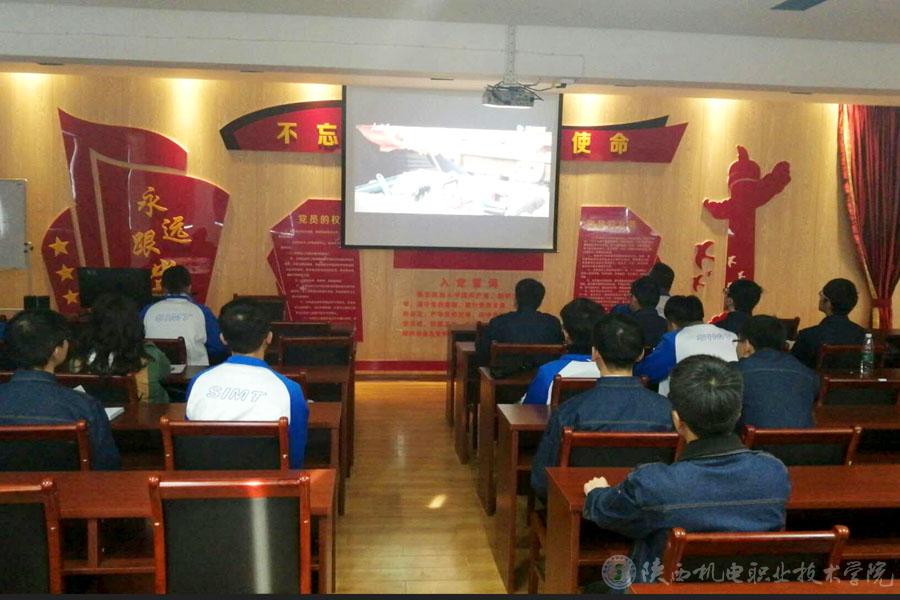實訓(xùn)學(xué)生在寶雞電務(wù)段黨員活動室觀看鐵路勞動安全視頻