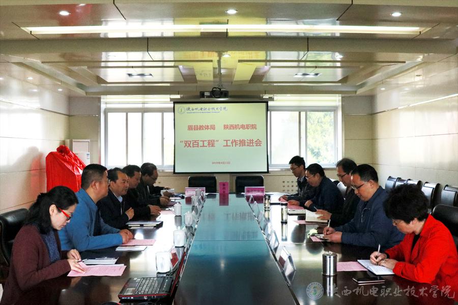 為推進(jìn)2019年我院與眉縣“雙百工程”工作深入開展,提升脫貧攻堅(jiān)工作成效,4月11日,2019年“雙百工程”推進(jìn)會(huì)在陜西機(jī)電學(xué)院行政樓會(huì)議室召開。