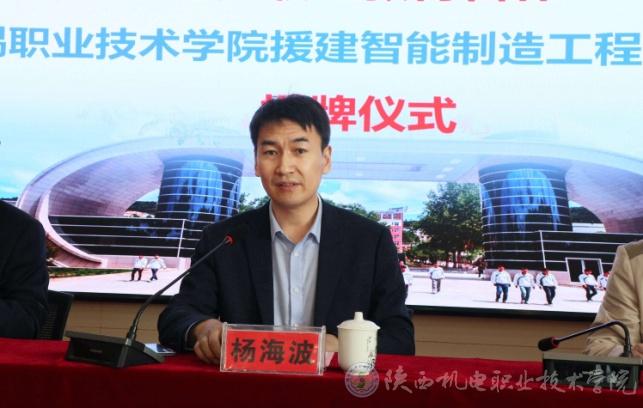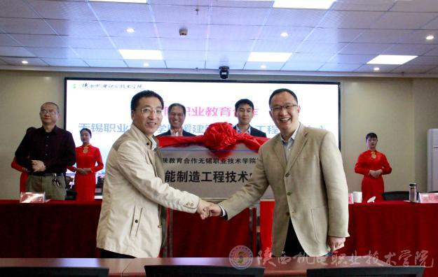 講座結(jié)束之后,兩校進行了《蘇陜職業(yè)教育合作-無錫職業(yè)技術學院援建智能制造工程技術中心》揭牌儀式。教育廳高教處副處長楊海波、無錫職業(yè)技術學院院長龔方紅、我院書記伊遜智、院長向紀明參加了此次活動,本次活動的進行標志著兩院合作進入實質(zhì)性新的階段。