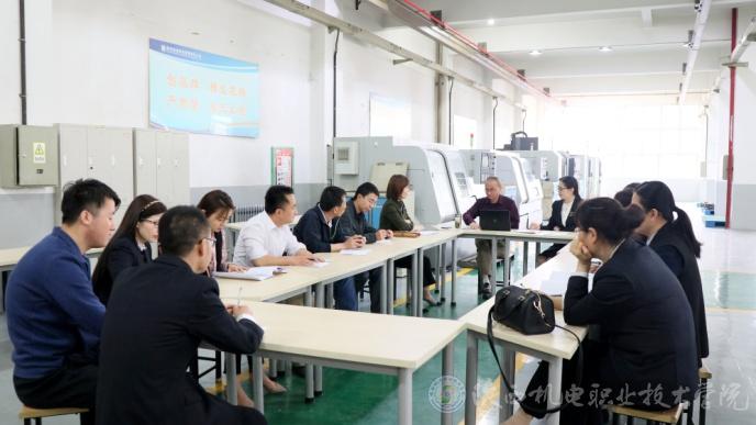 最后,在數(shù)控車間,黃麟院長現(xiàn)場對我院的智能制造生產(chǎn)線建設方案進行了研討論證。他從建設方案的思路、方案配置多方面進行了可行性分析,提出了寶貴的建議。