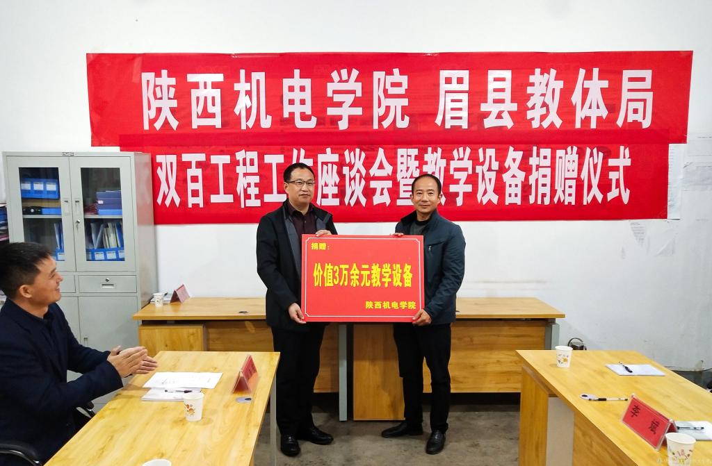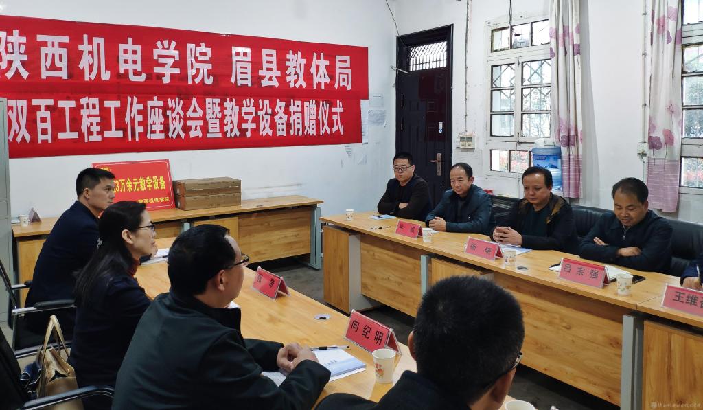 為教育扶貧辦實(shí)事、改善眉縣湯峪鎮(zhèn)羊倉(cāng)堡村基礎(chǔ)教育教學(xué)條件。10月15日下午,學(xué)院黨委副書(shū)記、院長(zhǎng)向紀(jì)明,副院長(zhǎng)張琴,院長(zhǎng)助理趙爭(zhēng)東,黨委宣傳部部長(zhǎng)李明一行4人赴眉縣開(kāi)展“雙百工程”工作座談會(huì)暨教學(xué)設(shè)備捐贈(zèng)儀式。眉縣教體局黨委副書(shū)記、副局長(zhǎng)呂宗強(qiáng),湯峪鎮(zhèn)紀(jì)委書(shū)記王維召,湯峪鎮(zhèn)教委教育專(zhuān)干王震飛,羊倉(cāng)堡小學(xué)校長(zhǎng)李斌等參加活動(dòng)。會(huì)議由眉縣學(xué)生資助管理中心主任楊曉主持。