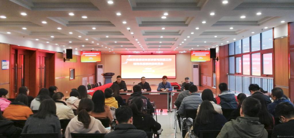 向紀明發(fā)表講話,感謝全體輔導(dǎo)員的辛勤工作,為我校學生教育與管理工作做出了重大貢獻。要求輔導(dǎo)員老師要帶頭學習診改評估知識,及時為學生講解宣傳,最后為大家打氣鼓勁,鼓勵大家堅持到底,全力以赴做好本次診改評估復(fù)核工作。