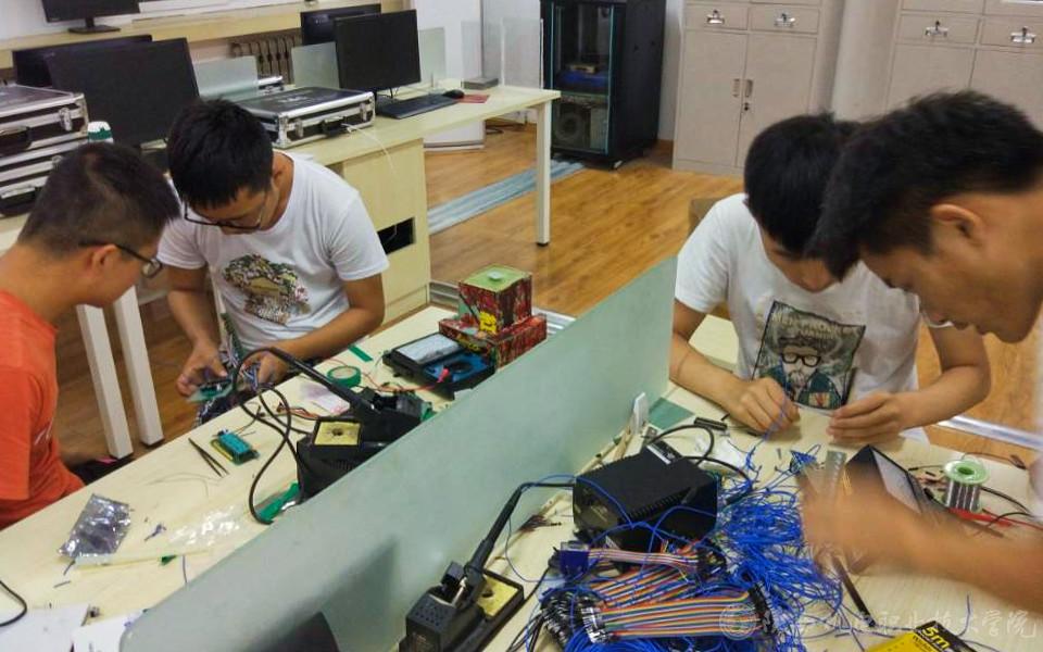 本次大賽學(xué)院領(lǐng)導(dǎo)高度重視,為大賽提供了全方位的后勤保障。婁勇、景鵬斌、李鵬三位老師利用假期時(shí)間全程指導(dǎo),隊(duì)員們刻苦學(xué)習(xí),努力實(shí)踐。競賽期間加班加點(diǎn)完成任務(wù)。