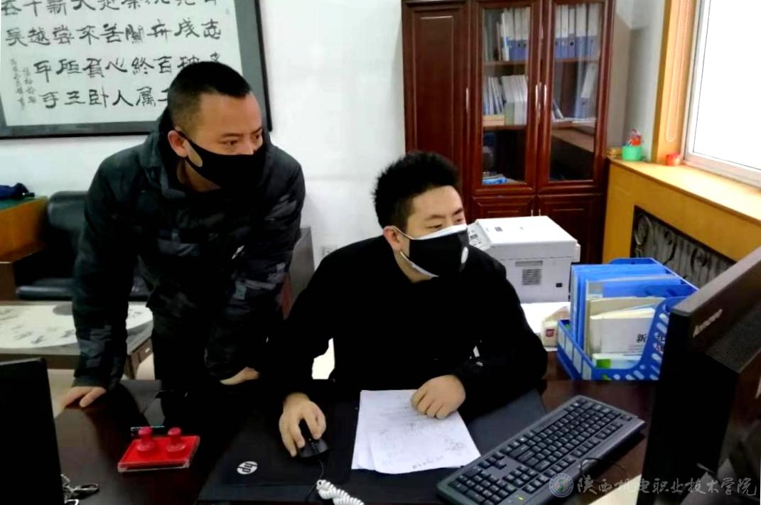 黨委學(xué)工部部長王建斌(左)、副部長常小凱(右)審核上報(bào)數(shù)據(jù)