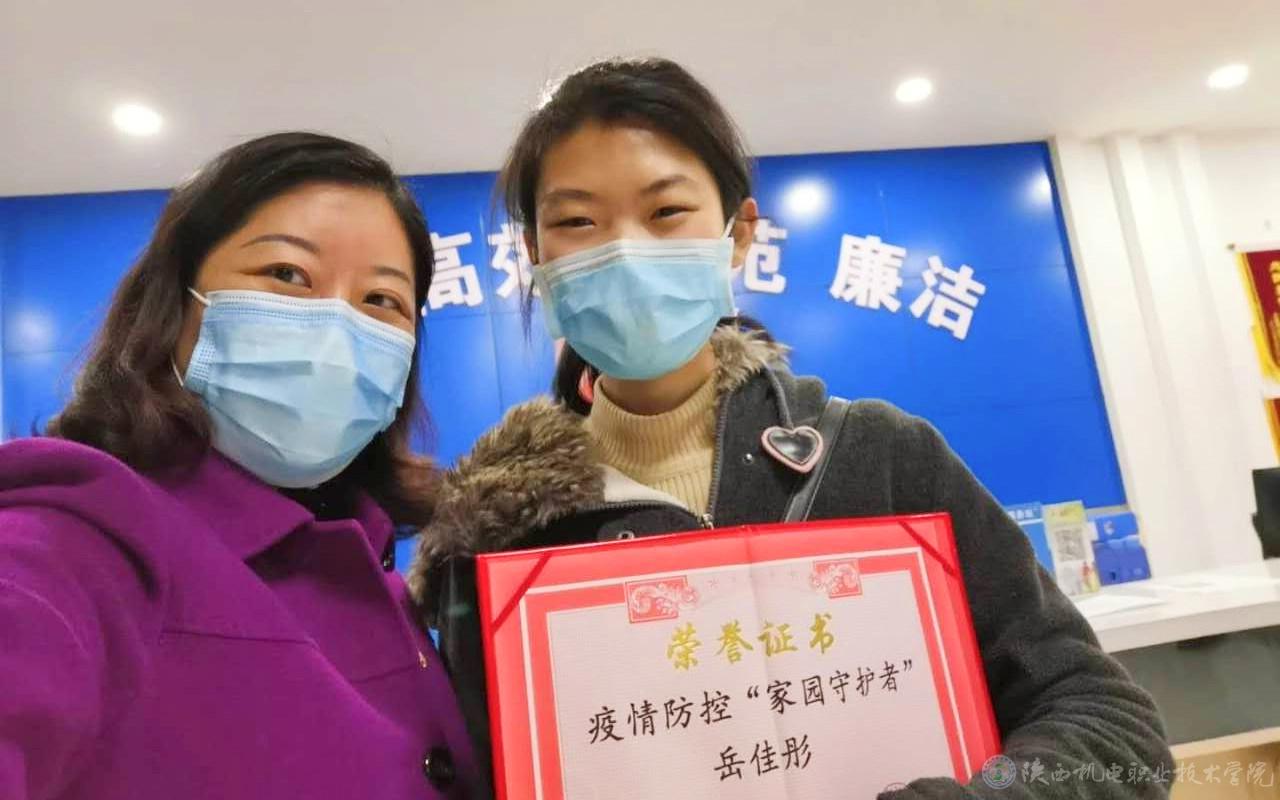 岳佳彤(右)被評(píng)為疫情防控“家園守護(hù)者”與社區(qū)黨支部書(shū)記合影