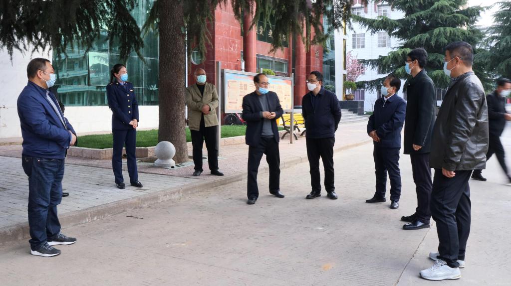 眉縣職教中心校長(zhǎng)鄭海龍帶領(lǐng)大家查看眉縣職教中心疫情防控工作