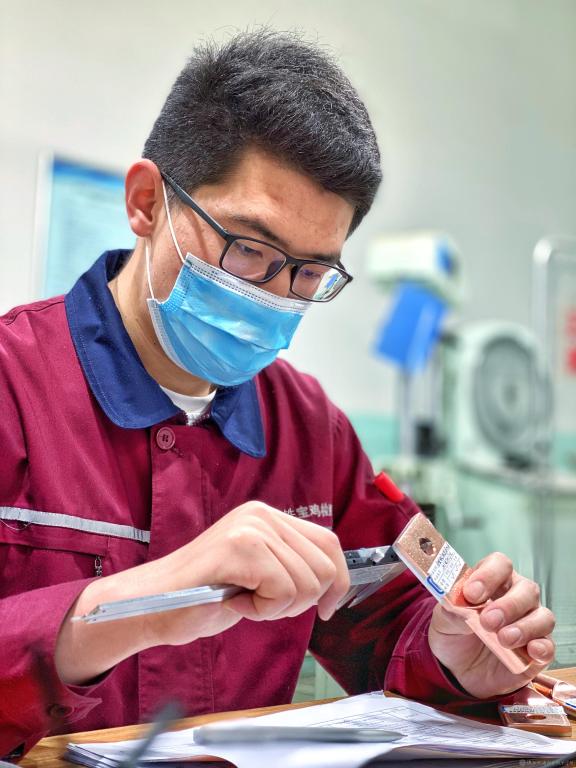 疫情發(fā)生以來,陜西省優(yōu)秀共青團(tuán)員、寶雞市優(yōu)秀共青團(tuán)員、共青團(tuán)十八大代表、寶雞檢測公司檢測試驗(yàn)部檢驗(yàn)員王海楠一直懸著一顆心。除了關(guān)注疫情的發(fā)展情況以外,他更放心不下的是公司里還未試驗(yàn)的接觸網(wǎng)零部件。春節(jié)前夕,根據(jù)公司正常計(jì)劃,蘇州五號(hào)線、上海15號(hào)線、上海18號(hào)線等接觸網(wǎng)零部件的試驗(yàn)工作安排至節(jié)后,可突如其來的疫情給試驗(yàn)按下了“暫停鍵”,一切工作戛然而止??伤睦锩靼?,那一批接觸網(wǎng)零部件是用于國家重點(diǎn)城市軌道交通工程中,很可能因?yàn)橐桓⌒〉穆菟ň蜁?huì)導(dǎo)致整個(gè)工程延期。于是王海楠主動(dòng)申請(qǐng)?zhí)崆皬?fù)工,最終他站在了復(fù)工復(fù)產(chǎn)的第一線。王海楠說:“疫情給試驗(yàn)按下了“暫停鍵”,現(xiàn)在復(fù)工復(fù)產(chǎn)了,我要和全體成員毫不猶豫地按下試驗(yàn)的‘快進(jìn)鍵’?!睆?fù)工復(fù)產(chǎn)后,在試驗(yàn)車間每天都能看到他和工友們戴著口罩共同忙碌的身影,透過他們堅(jiān)定的眼神我們懂得了“責(zé)任”與“堅(jiān)守”。他們放棄中午休息,第一時(shí)間高質(zhì)量完成檢驗(yàn)檢測任務(wù),確保了重點(diǎn)工程的安全施工。他們?cè)趶?fù)工復(fù)產(chǎn)的第一線,為打贏這場疫情防控的人民戰(zhàn)、總體戰(zhàn)、阻擊戰(zhàn)貢獻(xiàn)了寶雞檢測的力量,為中國的電氣化鐵路事業(yè)保駕護(hù)航。