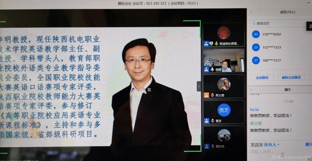 李明為大會(huì)做題為《以賽促教、以賽促改——從技能大賽談高職英語(yǔ)課堂教學(xué)改革》的線上報(bào)告