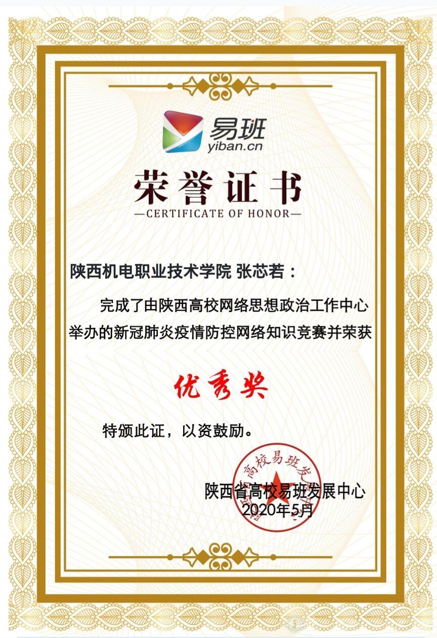 陜西高校網(wǎng)絡(luò)思想政治工作中心、陜西省高校易班發(fā)展中心發(fā)布《陜西高校大學(xué)生新型冠狀病毒肺炎疫情防控網(wǎng)絡(luò)知識競賽獲獎名單的公告》,公布本次知識競賽優(yōu)秀組織獎名單和個人獲獎名單,其中全省高校優(yōu)秀組織獎15個(其中高職類院校5個),高校個人獎227個(其中高職類院校56個)。我校師生在本次知識競賽中表現(xiàn)出色,喜獲“優(yōu)秀組織獎”,我院16動漫五年班張芯若同學(xué)獲得“優(yōu)秀獎”。