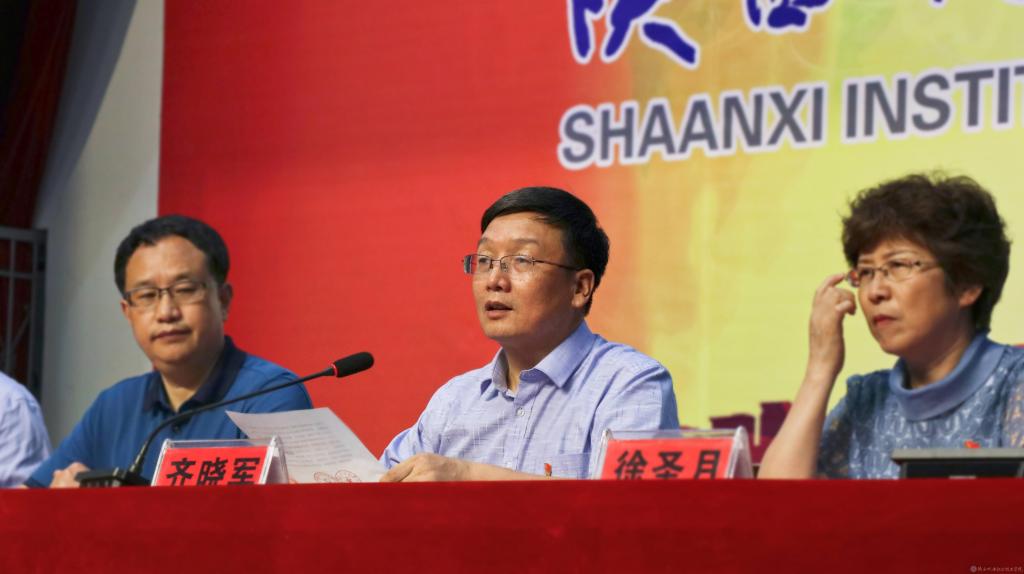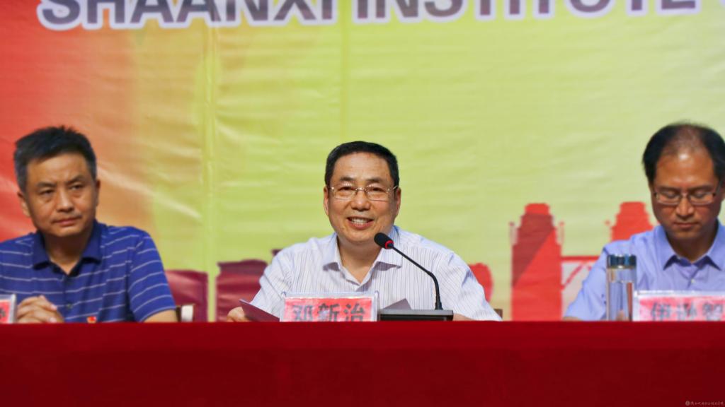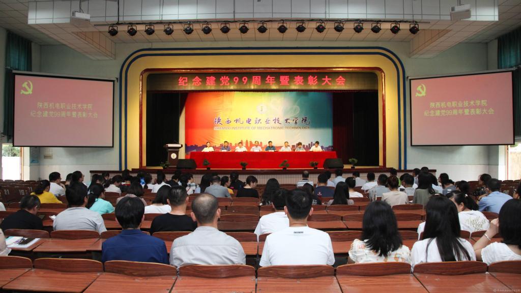 鄧新治宣讀《中共陜西機(jī)電職業(yè)技術(shù)學(xué)院委員會(huì)關(guān)于慶祝建黨99周年暨表彰先進(jìn)黨支部、優(yōu)秀共產(chǎn)黨員、優(yōu)秀黨務(wù)工作者的決定》