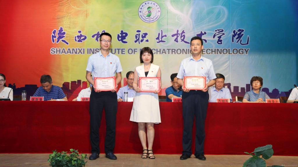 鄧新治宣讀《中共陜西機(jī)電職業(yè)技術(shù)學(xué)院委員會(huì)關(guān)于慶祝建黨99周年暨表彰先進(jìn)黨支部、優(yōu)秀共產(chǎn)黨員、優(yōu)秀黨務(wù)工作者的決定》并頒獎(jiǎng),授予行政黨支部等5個(gè)單位“先進(jìn)黨支部”,授予徐圣月等18名同志“優(yōu)秀共產(chǎn)黨員”稱號(hào),授予邢平等3名同志“優(yōu)秀黨務(wù)工作者”榮譽(yù)稱號(hào)。