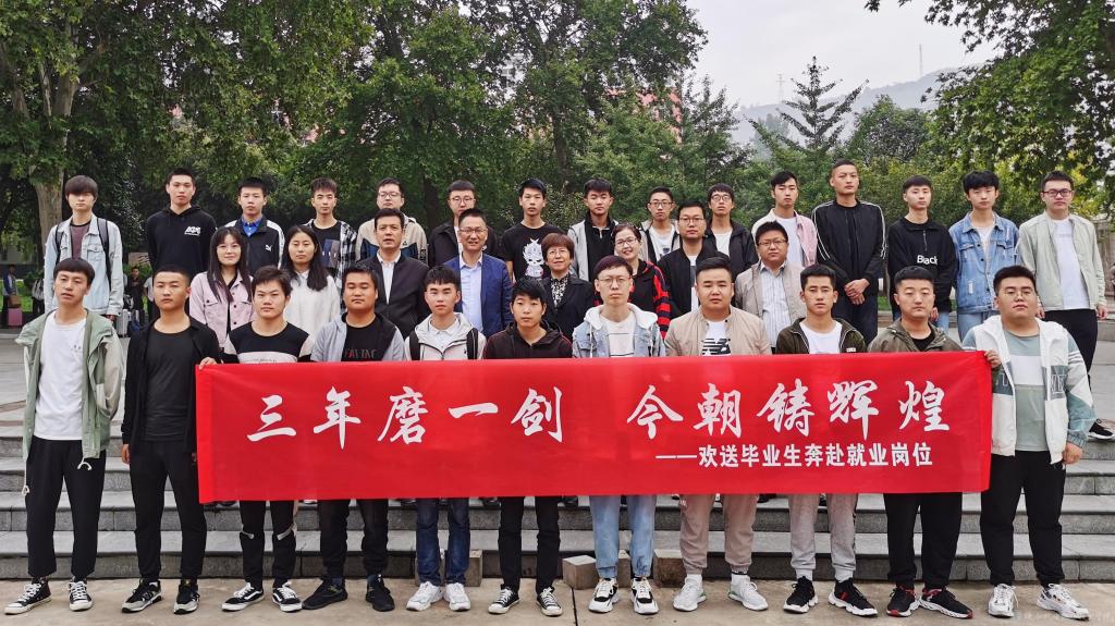 2020年9月29日,我校2021屆27名畢業(yè)生離校奔赴中鐵一局集團(tuán)電務(wù)公司報(bào)到。副院長(zhǎng)徐圣月、招生就業(yè)處處長(zhǎng)朱云潔、鐵道工程學(xué)院副院長(zhǎng)賈九榮、招生就業(yè)處副處長(zhǎng)田正本及2021屆相關(guān)輔導(dǎo)員老師在校門口歡送畢業(yè)生并合影留念。