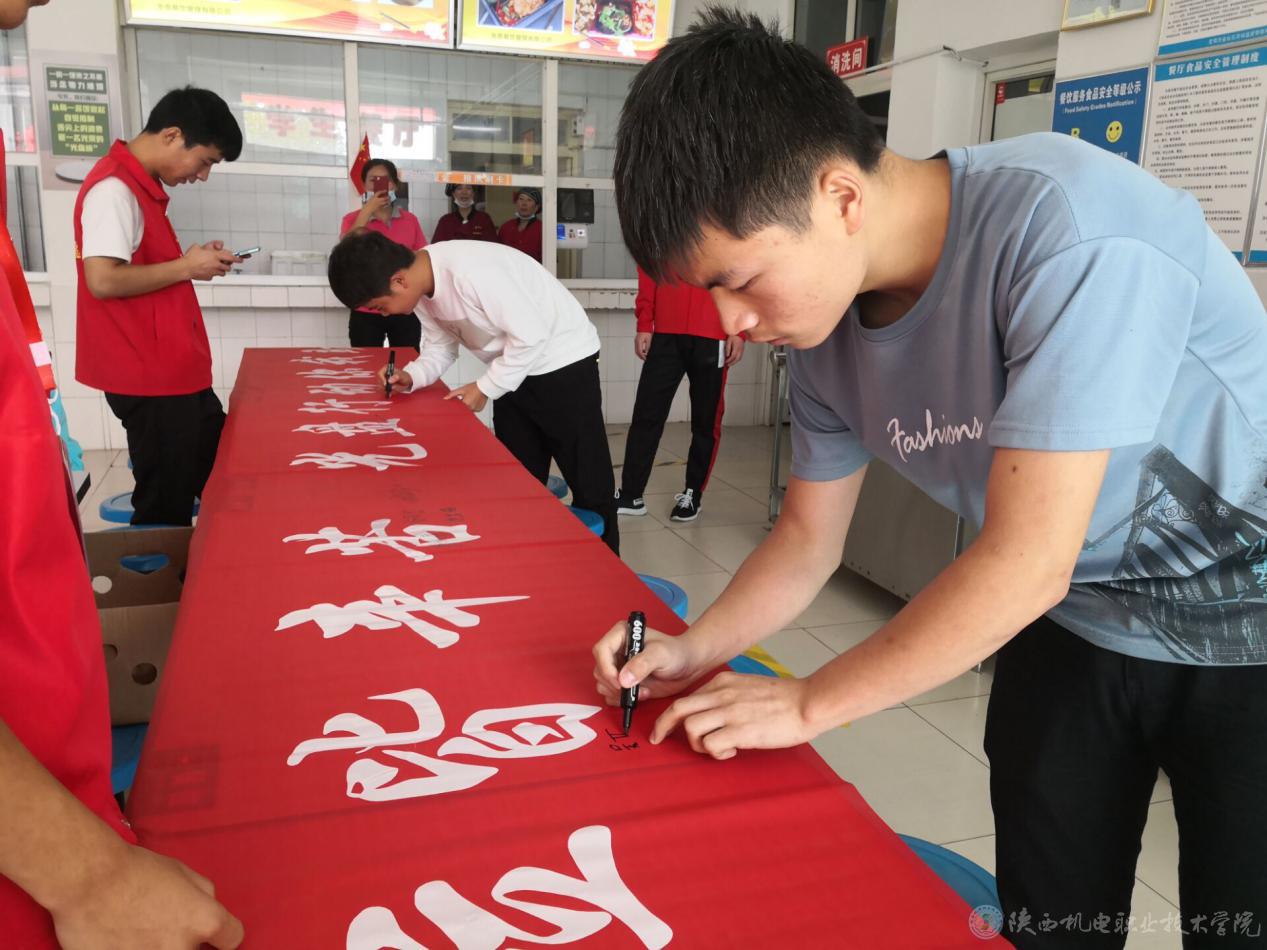 9月29日中午校團委聯(lián)合志愿者分別在學校兩個食堂收餐處旁邊放置橫幅和小禮品,學生可憑借光盤在橫幅上簽字并領取禮品。