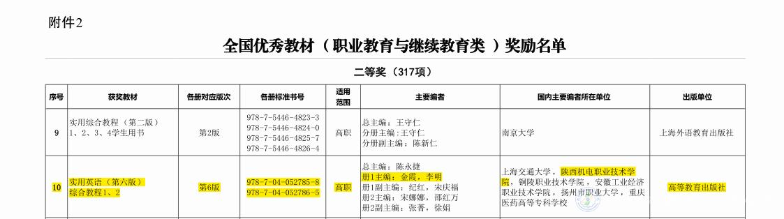 我校名師工作室主持人、基礎(chǔ)部李明副教授主編的《實用英語綜合教程(第六版)》榮獲全國優(yōu)秀教材(職業(yè)教育與繼續(xù)教育類)二等獎。這是我校在教材建設(shè)成果上取得的新突破。