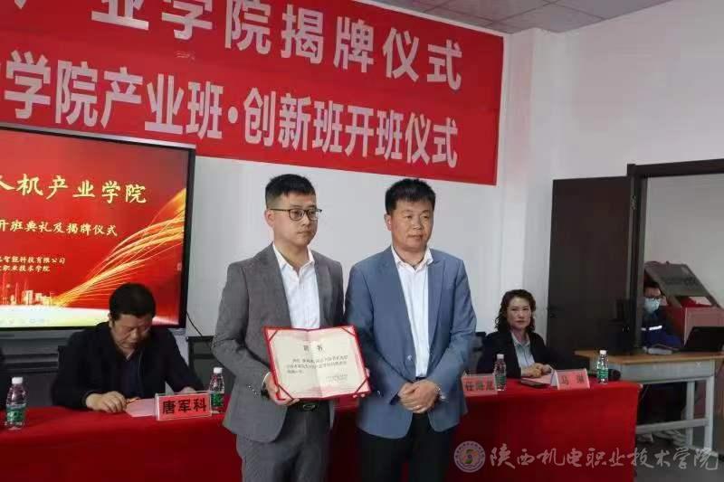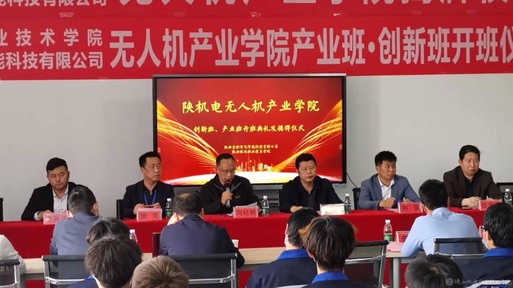 2022年4月21日,我校在蟠龍校區(qū)舉行陜機電職院-陜西壹控智飛產(chǎn)業(yè)學院揭牌及開班典禮。寶雞市蟠龍新區(qū)管委會主任唐軍科、副主任任海龍、招商局副局長李俊,陜西壹控智飛智能科技有限公司董事長劉罡、總經(jīng)理李海濤、行政總監(jiān)馬琳、教學主管李超康出席會議。陜西機電職業(yè)技術學院黨委副書記、校長向紀明,黨委委員、副校長張克以及黨委宣傳部、招就處、校企合作處、汽車工程學院、智能制造學院等部門負責人、專業(yè)教師代表和學生代表,寶雞電視臺、寶雞廣播電臺、寶雞日報、寶雞新聞網(wǎng)等媒體列席此次會議,會議由汽車工程學院院長李靖主持。