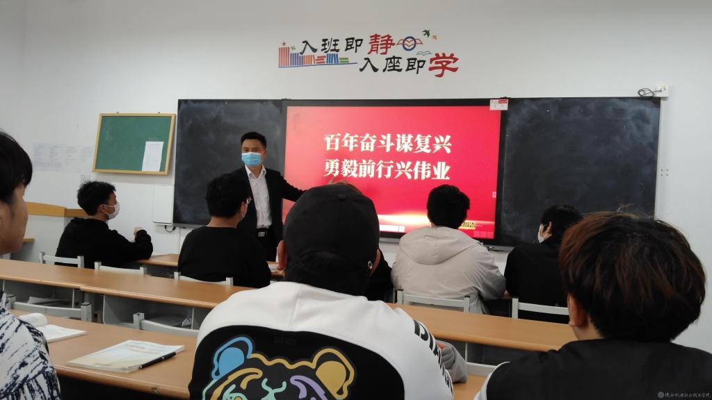 4月28日下午5-6節(jié)課,學(xué)院黨委委員、副院長(zhǎng)張新堂在博學(xué)樓316教室為20智能聯(lián)培1、20智能聯(lián)培2班學(xué)生講授形勢(shì)與政策課第一講《百年奮斗謀復(fù)興,勇毅前行興偉業(yè)》。