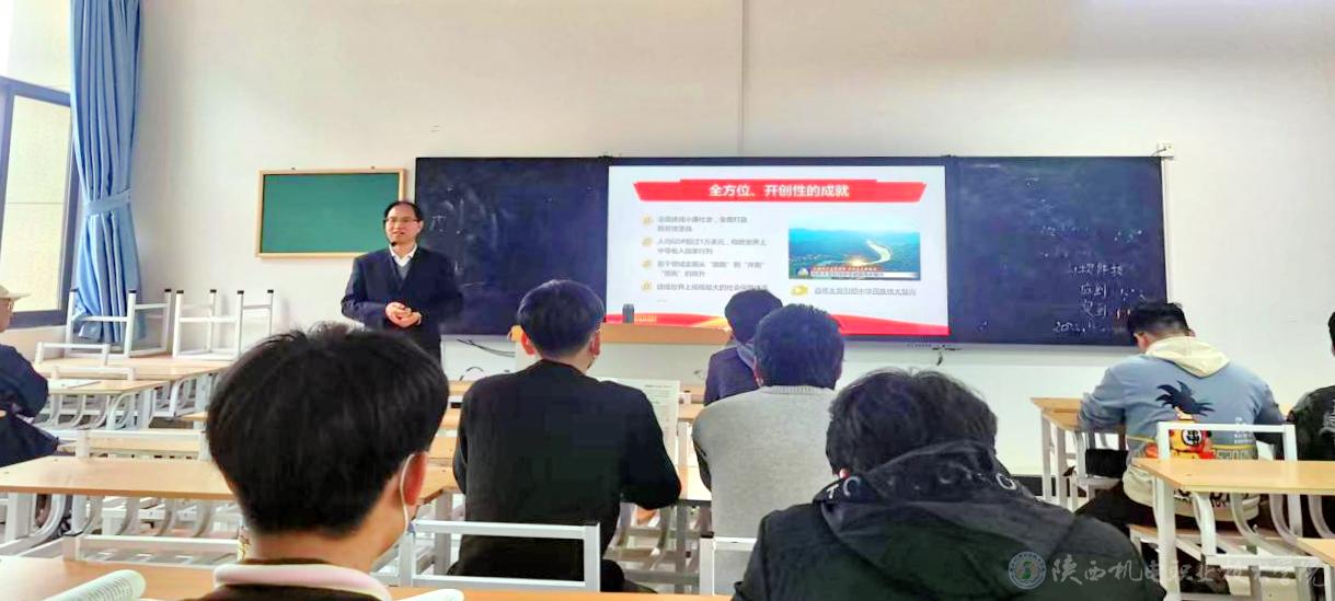 在講到第二部分氣象萬千的偉大時代,濃墨重彩的嶄新篇章時,伊?xí)浾劦?,黨的十八大以來,中國特色社會主義進(jìn)入了新時代。中國特色社會主義新時代,是承前啟后、繼往開來、在新的歷史條件下繼續(xù)奪取中國特色社會主義偉大勝利的時代,是決勝全面建成小康社會、進(jìn)而全面建設(shè)社會主義現(xiàn)代化強(qiáng)國的時代,是全國各族人民團(tuán)結(jié)奮斗、不斷創(chuàng)造美好生活、逐步實(shí)現(xiàn)全體人民共同富裕的時代,是全體中華兒女勠力同心、奮力實(shí)現(xiàn)中華民族偉大復(fù)興中國夢的時代,是我國不斷為人類作出更大貢獻(xiàn)的時代。并將《決議》中的“十個明確”為大家一一解讀,運(yùn)用鮮活的事例和經(jīng)典的黨史故事為大家答疑解惑。聆聽了伊?xí)浀募?xì)心講解,同學(xué)們深刻領(lǐng)會了習(xí)近平新時代中國特色社會主義思想的核心內(nèi)容。