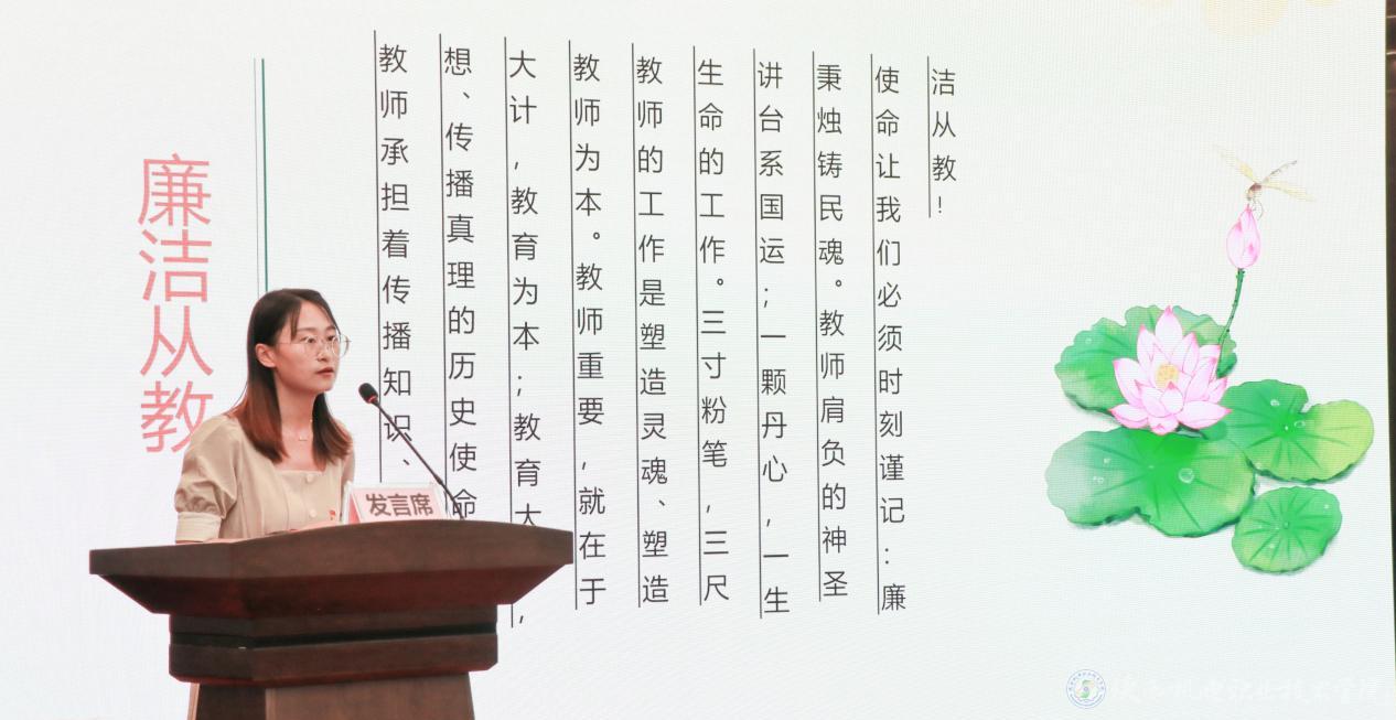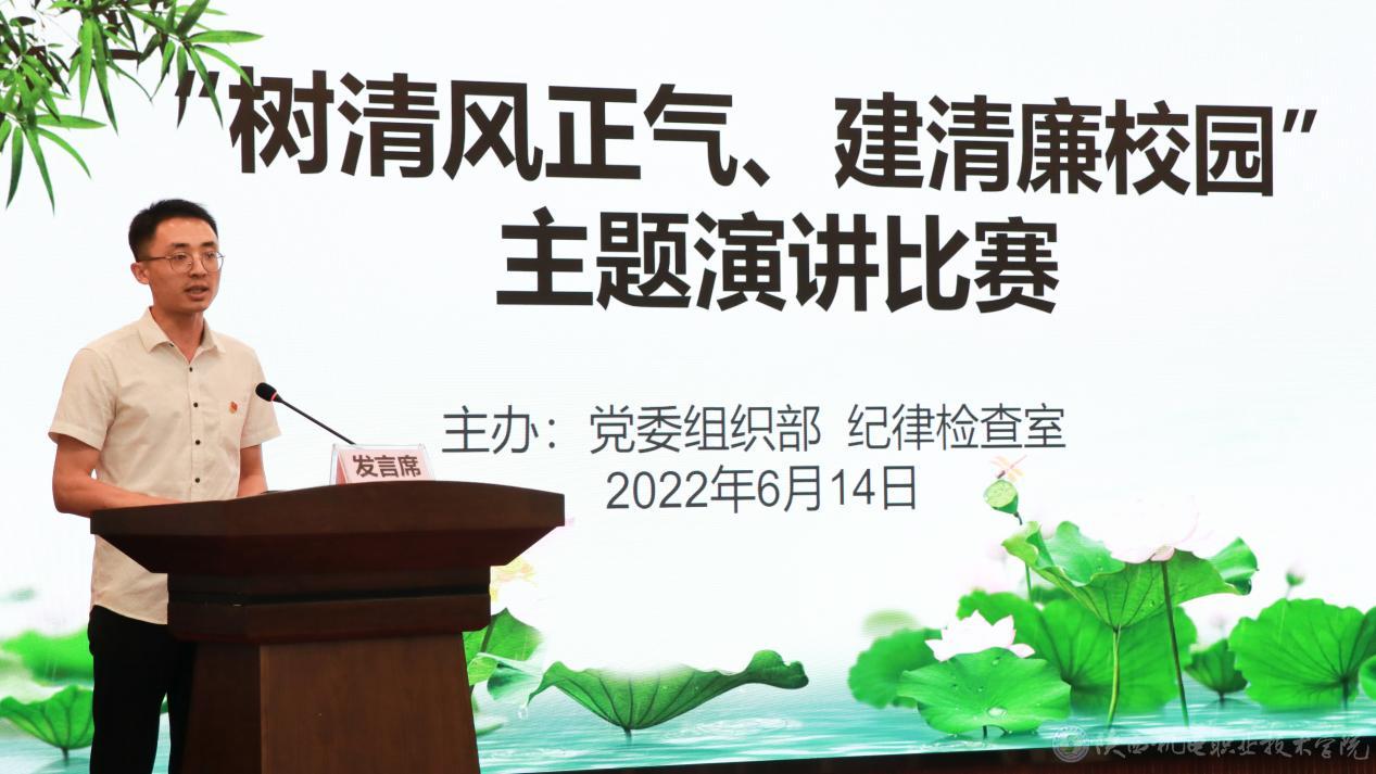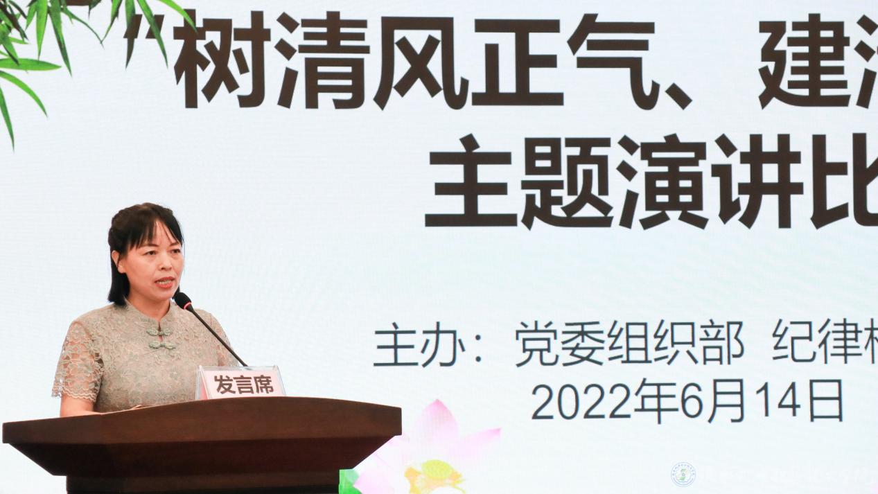 參賽選手們高度重視,準(zhǔn)備充分,緊緊圍繞“樹清風(fēng)正氣、建清廉校園”主題,結(jié)合立德樹人、廉潔傳承,聲情并茂地講述著廉潔故事和先進(jìn)事跡,從不同角度和層面詮釋了對“廉潔”的深刻理解。演講作品中有弘揚廉潔文化、筑造廉政中國的逐夢之旅,有歌頌廉潔奉公典范人物的華彩篇章,有潛心育人、彰顯廉潔情懷的錚錚誓言,也有對營造廉潔校園文化的思考與凝煉,充分展示了我校教師黨員充滿理想激情、積極奮發(fā)進(jìn)取的精神風(fēng)貌。演講過程中,選手們時而激情澎湃,時而舒緩動情,他們以飽滿的熱情,昂揚的精神狀態(tài),滿腔的熱忱給在場觀眾帶來一次又一次精神上的洗禮,引得現(xiàn)場聽眾強烈的震撼和共鳴,博得了陣陣掌聲。