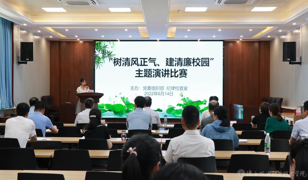 為深入推進(jìn)廉潔文化宣傳教育月活動,進(jìn)一步在全校范圍內(nèi)營造說廉、倡廉、崇廉的文化氛圍,2022年6月14日下午,黨委組織部、紀(jì)律檢查室在蟠龍校區(qū)博學(xué)樓視頻會議室舉辦了“樹清風(fēng)正氣、建清廉校園”主題演講比賽。黨委書記伊遜智,黨委副書記、紀(jì)委書記齊曉軍,黨委委員、副院長張新堂,黨委委員、副院長張克,校級督導(dǎo)徐圣月,黨委委員、院長助理趙爭東蒞臨大賽現(xiàn)場。各黨支部書記擔(dān)任此次比賽的評委,來自各支部推薦的17名黨員代表參加比賽。比賽由黨委組織部綜合科科長張玉瓊主持。