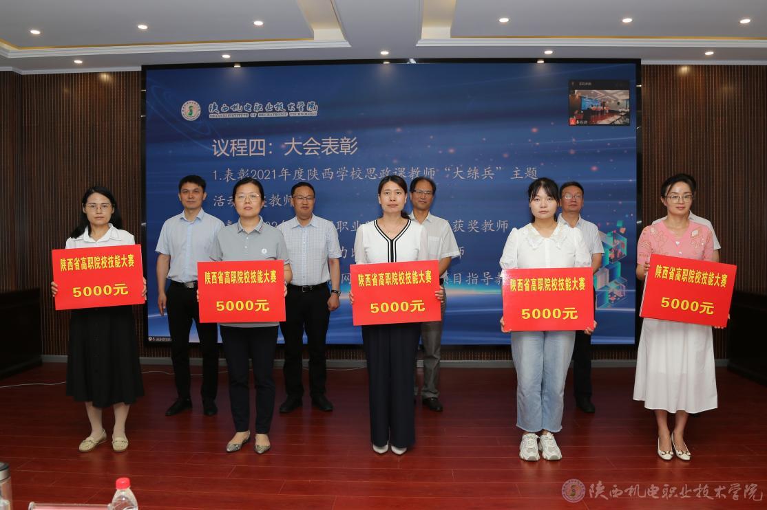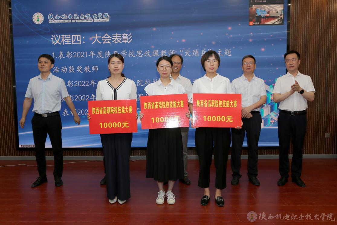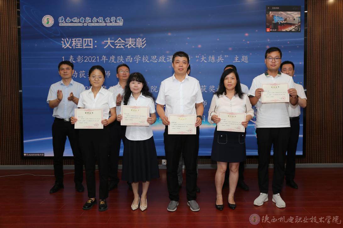 大會(huì)還對(duì)我校2021年度陜西學(xué)校思政課教師“大練兵”主題活動(dòng)獲獎(jiǎng)教師、2022年陜西省職業(yè)院校技能大賽獲獎(jiǎng)教師、2022年教學(xué)能力比賽校賽獲獎(jiǎng)教師、2022年“互聯(lián)網(wǎng)+”校賽獲獎(jiǎng)項(xiàng)目指導(dǎo)教師進(jìn)行了表彰。