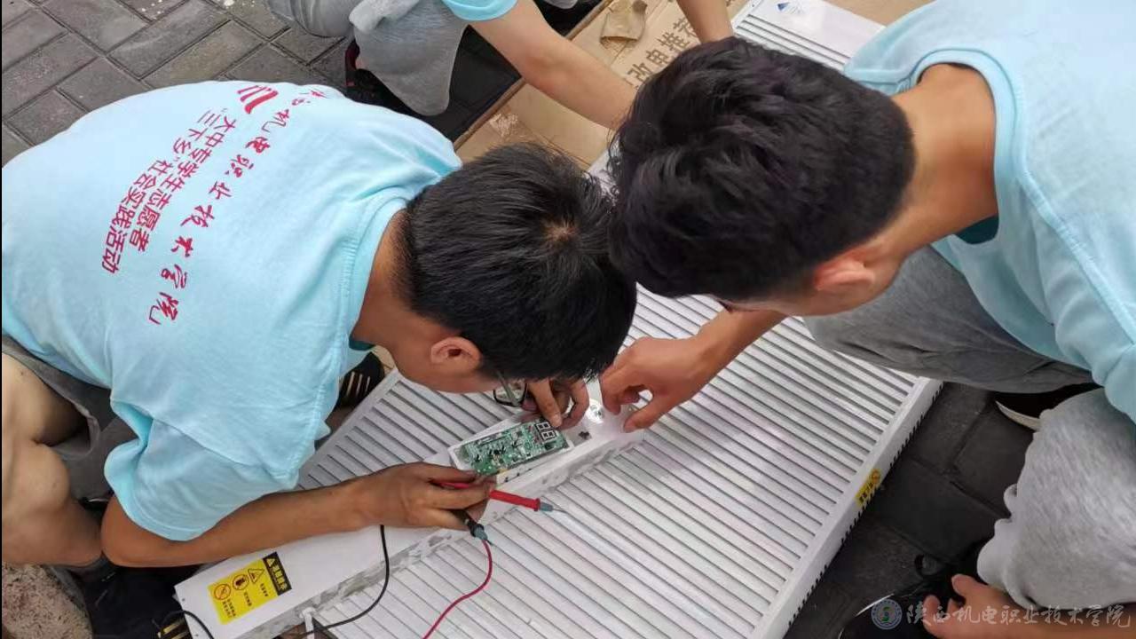電子與信息學(xué)院的志愿者們?cè)诶蠋焸兊膸ьI(lǐng)下,組織開展“家電維修”實(shí)踐活動(dòng),他們分工明確、團(tuán)結(jié)協(xié)作,為村民們維修家里電水壺、電飯煲、電風(fēng)扇等家用電器,拿著萬用表、焊筆等專業(yè)工具,細(xì)致耐心地開始檢測(cè)、維修,讓一件件小家電“重獲新生”。雖然7月的烈陽炎熱無比,但絲毫沒有影響到志愿者們?yōu)槊穹?wù)的心意,個(gè)個(gè)都在專心做著自己手中的事情。