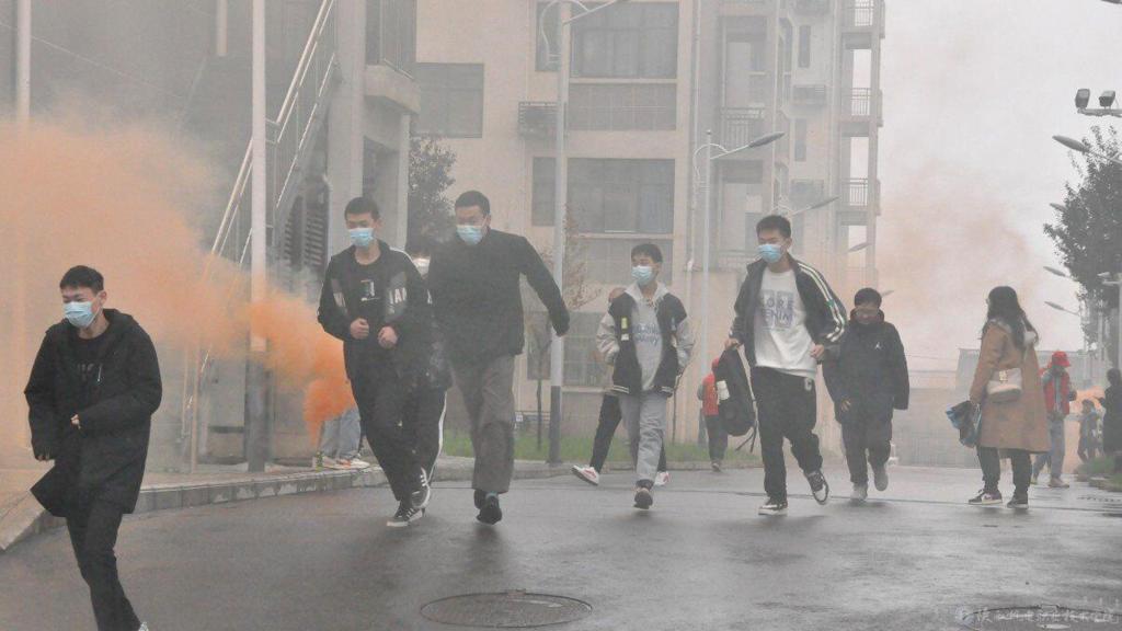 下午1點整,隨著廣播“宿舍樓發(fā)生火災(zāi),請同學(xué)們立即撤離”指令的下達(dá),全體師生開始有序撤離,蟠龍校區(qū)3000余名師生全部安全疏散完畢總耗時3分50秒。