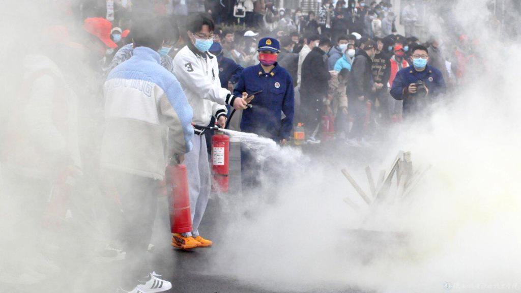 隨后有序開展了消防趣味運動會、消防滅火實戰(zhàn)演練、消防器材展等互動環(huán)節(jié),到場的消防員們在現(xiàn)場言傳身教,為同學(xué)們展示了不同種類滅火器的使用方法并普及相關(guān)消防知識,同學(xué)們也在現(xiàn)場手拿滅火器進(jìn)行實操。使學(xué)生們親身體驗了消防員工作的辛苦,同時對消防安全規(guī)范有了更進(jìn)一步的了解。