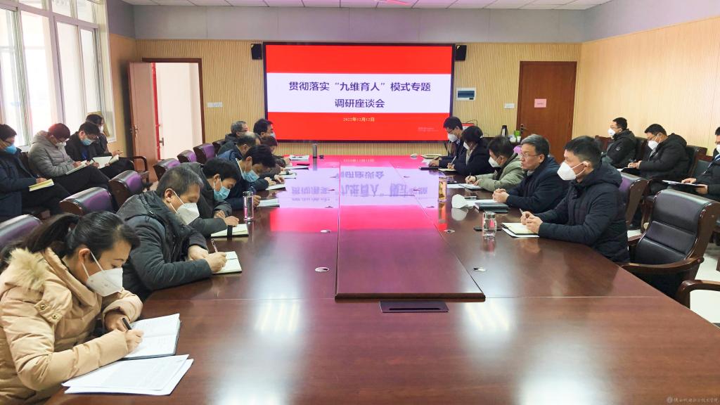 就全面深化落實(shí)“九維育人”模式,齊曉軍提出了三點(diǎn)要求:一是提高思想認(rèn)識。要圍繞立德樹人根本任務(wù),充分認(rèn)識全面深化落實(shí)“九維育人”模式的重要意義,切實(shí)把思想和行動統(tǒng)一到學(xué)校黨委的部署要求上來,高度重視并扎實(shí)推動“九維育人”工作。二是完善工作機(jī)制。要以今天的交流座談為契機(jī),總結(jié)經(jīng)驗(yàn)方法,查找自身不足,細(xì)化完善各部門協(xié)作配合機(jī)制,開展“九維育人”理論研究、成果轉(zhuǎn)化、創(chuàng)新工作,努力形成工作合力,進(jìn)一步推動“九維育人”工作落實(shí)落細(xì)。三是強(qiáng)化督促落實(shí)。要圍繞實(shí)施方案,對照實(shí)施指標(biāo)體系,制定具體實(shí)施細(xì)則,拿出具體實(shí)施項(xiàng)目,明確實(shí)施途徑和辦法,及時督促落實(shí),確?!熬啪S育人”模式落地生根、務(wù)求實(shí)效。