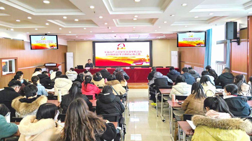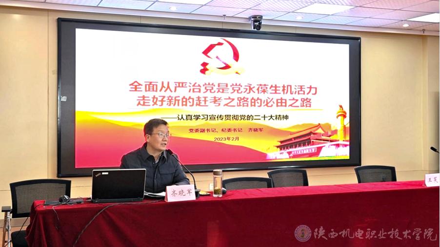 2023年2月2日下午,學(xué)校黨委副書記、紀(jì)委書記齊曉軍在寶福路校區(qū)汽車機電大樓四樓視頻會議室講授《全面從嚴(yán)治黨是黨永葆生機活力、走好新的趕考之路的必由之路》專題黨課,基礎(chǔ)部黨支部、經(jīng)管與藝術(shù)學(xué)院黨支部所轄部門全體教職工、紀(jì)委委員、紀(jì)檢委員等60多人參加,紀(jì)委副書記、紀(jì)律檢查室主任王芙蓉主持會議。