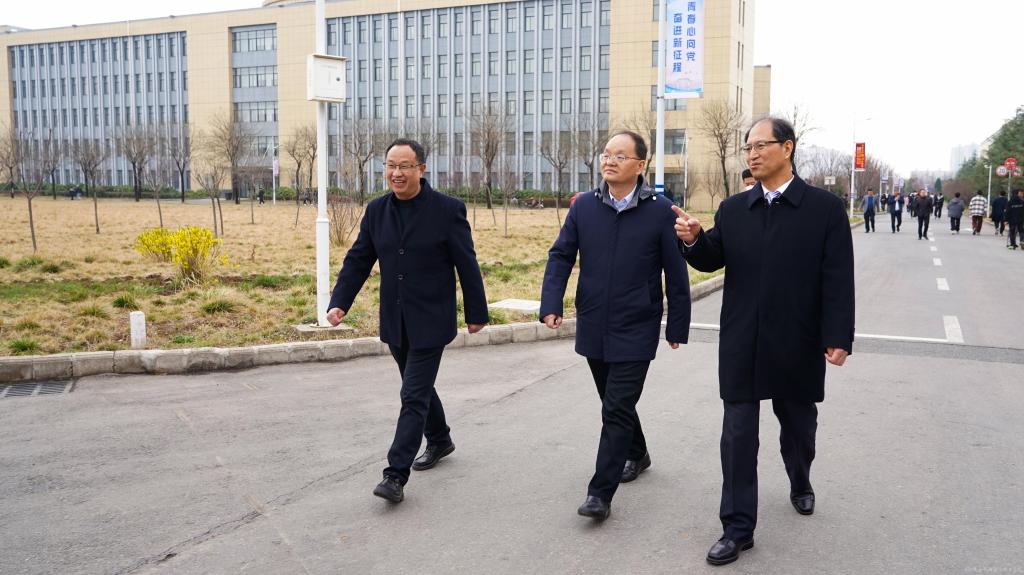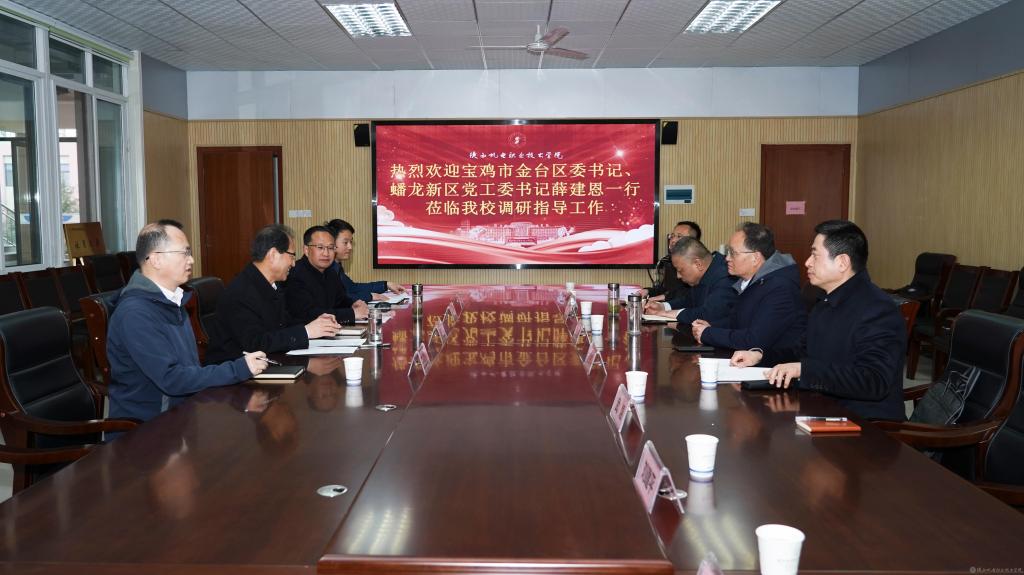 3月17日下午,寶雞市金臺區(qū)委書記、蟠龍新區(qū)黨工委書記薛建恩來校調(diào)研指導學校蟠龍新校區(qū)建設工作。蟠龍新區(qū)黨工委副書記劉歲科、蟠龍新區(qū)管委會副主任高翔、金臺區(qū)委辦主任武煜、蟠龍新區(qū)住建局局長劉建平、蟠龍新區(qū)自規(guī)局局長李新剛,學校黨委書記伊遜智,黨委副書記、院長向紀明等陪同調(diào)研。
