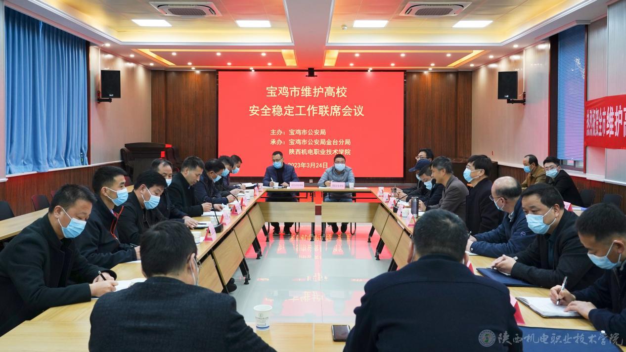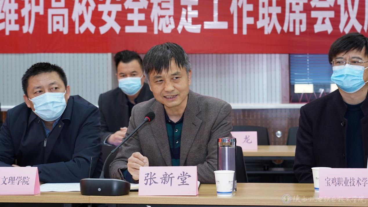 3月24日上午,寶雞市維護(hù)高校安全穩(wěn)定工作聯(lián)席會在我校蟠龍校區(qū)博學(xué)樓111會議室召開。會議由寶雞市公安局經(jīng)文保支隊支隊長雷戰(zhàn)衛(wèi)主持,我校副院長張新堂出席會議并致歡迎辭,寶雞市公安局相關(guān)警種負(fù)責(zé)人,金臺、渭濱、高新、陳倉分局分管副局長、經(jīng)文保大隊長及寶雞市各高校代表參加了會議,我校保衛(wèi)處副處長常小凱作為承辦單位代表出席會議。