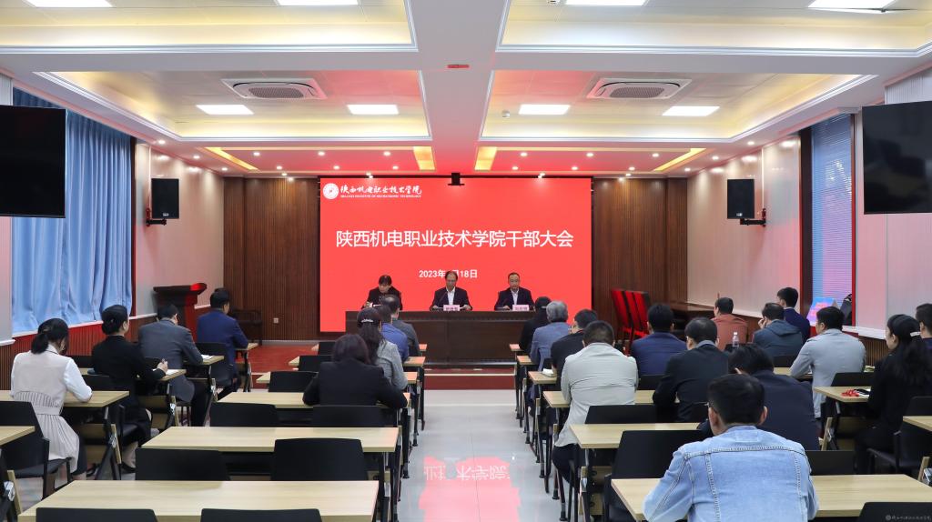 2023年4月18日上午,陜西機電職業(yè)技術(shù)學(xué)院在蟠龍校區(qū)博學(xué)樓111室召開干部大會。學(xué)校黨政領(lǐng)導(dǎo)班子成員、中層干部參加會議。