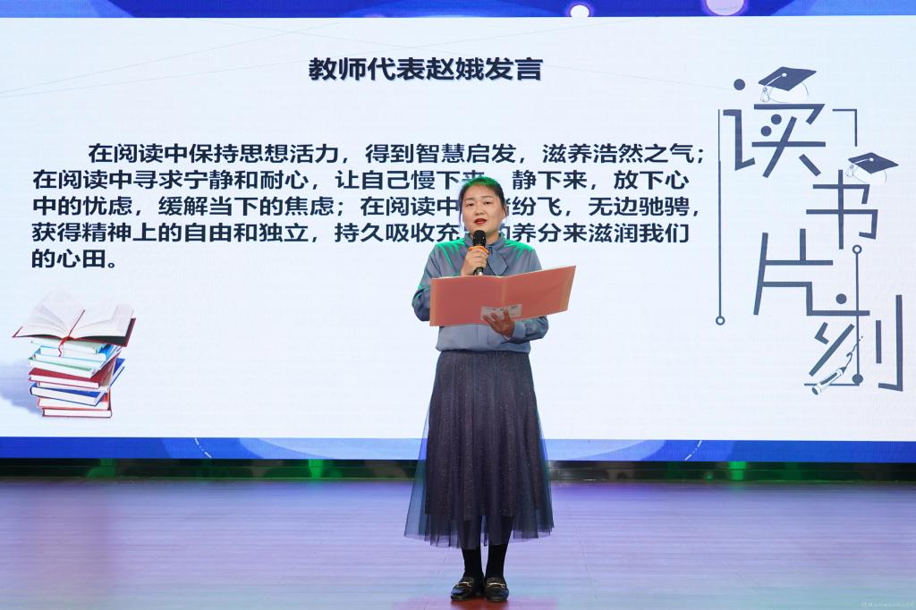 啟動(dòng)會(huì)上,教師代表趙娥分享了自己的閱讀經(jīng)驗(yàn)和體會(huì),學(xué)生代表王甲羽向全校師生發(fā)出讀書倡儀。