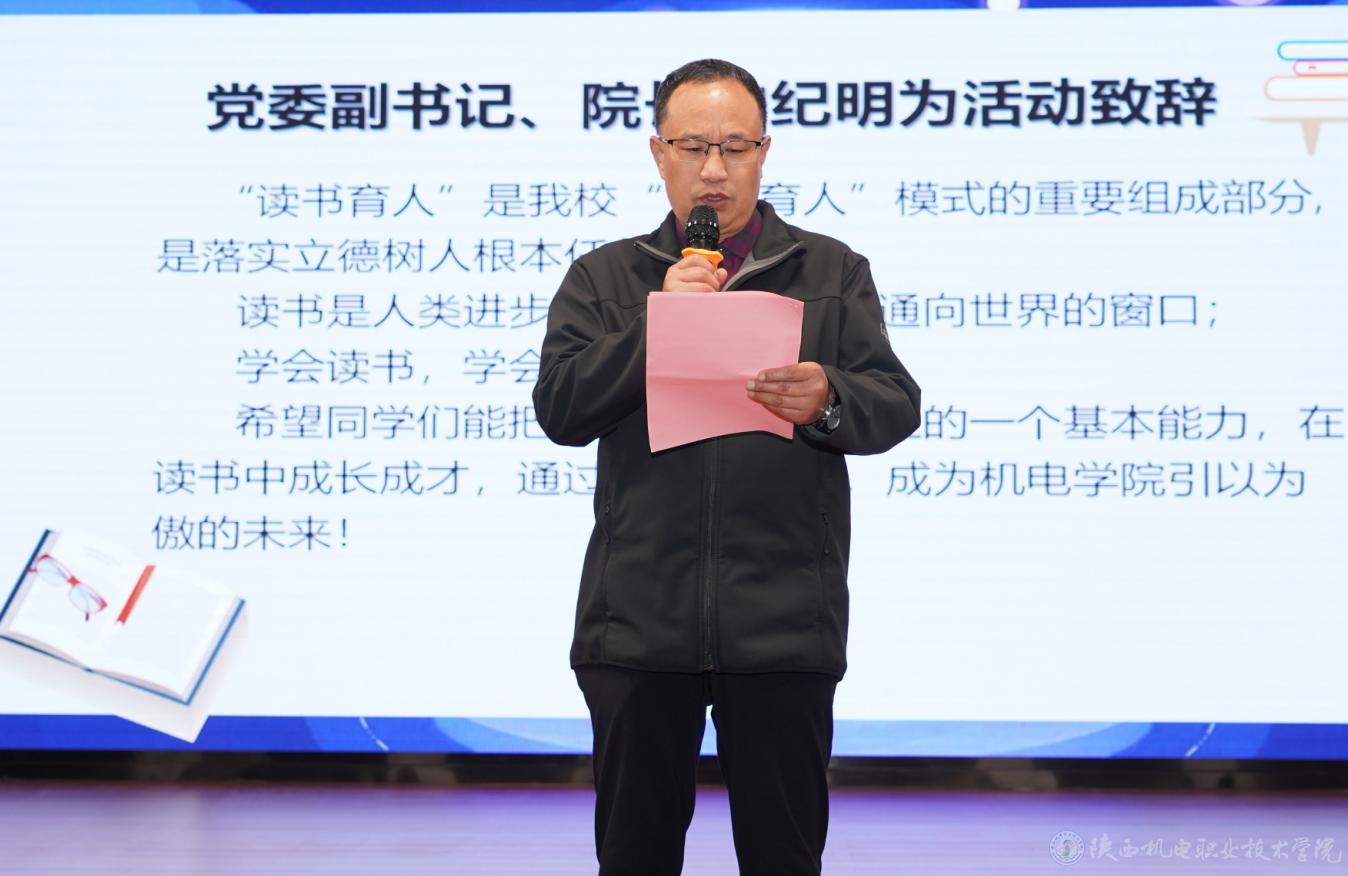 副院長(zhǎng)張克宣讀了《陜西機(jī)電職業(yè)技術(shù)學(xué)院4·23世界讀書日暨第五屆讀書月活動(dòng)方案》。