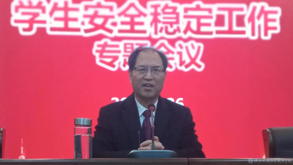 我校學(xué)生安全穩(wěn)定工作專題會議于4月26日上午在蟠龍校區(qū)博學(xué)樓會議室召開,黨委書記伊遜智出席,保衛(wèi)處副處長常小凱、學(xué)工系統(tǒng)科級以上干部、全體專職輔導(dǎo)員、新疆派駐教師參加,會議由學(xué)生處處長王建斌主持。