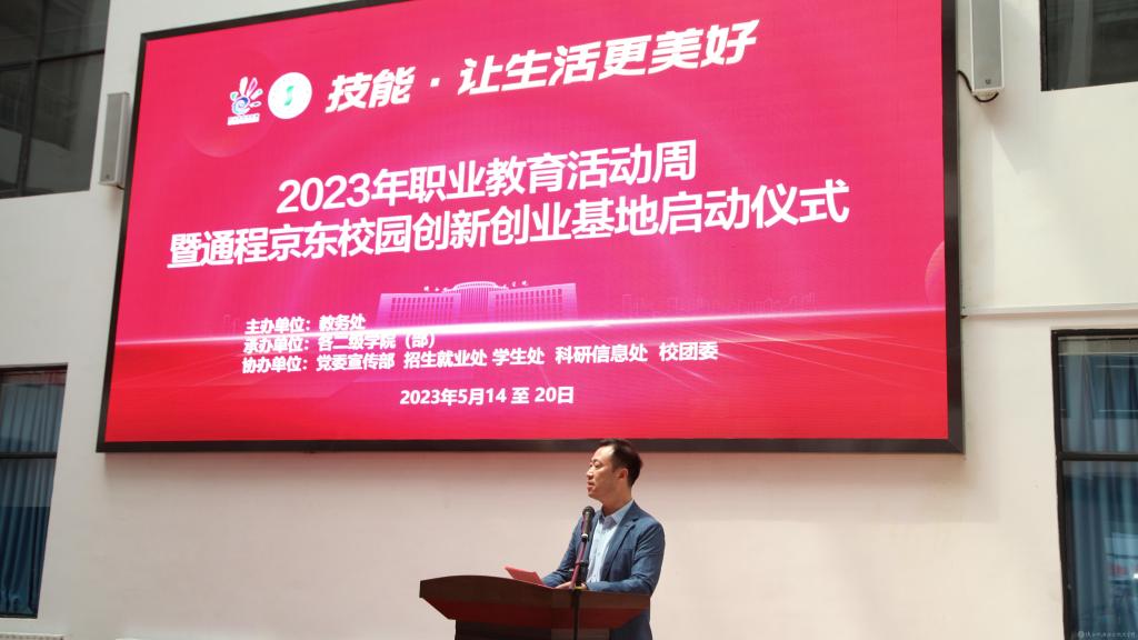 黨委書記伊遜智宣布陜西機(jī)電職業(yè)技術(shù)學(xué)院2023年職業(yè)教育活動周暨通程京東校園創(chuàng)新創(chuàng)業(yè)基地正式啟動